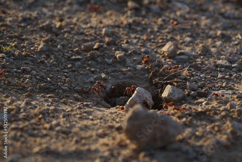 © ccestep8, Fototapeta premium Fire ants at mound closeup during summer in Texas.