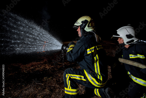 Obraz premium Fire brigade in action at night time