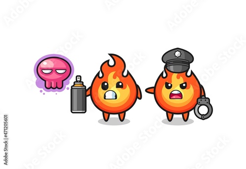 Obraz premium fire cartoon doing vandalism and caught by the police