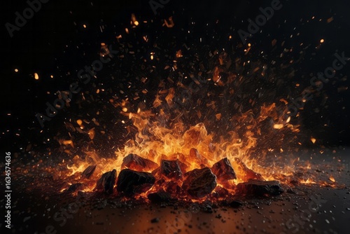 © SADEWA, Naklejka premium Fire embers particles over black background. Fire sparks background