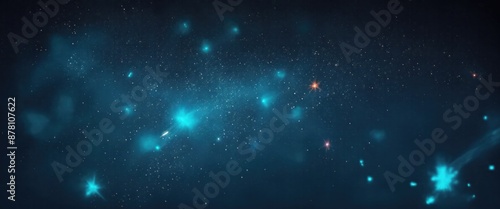 © Reazy Studio, Naklejka premium Fire embers particles over Cyan background, Abstract dark glitter fire particles lights