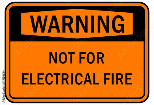 Fototapeta premium Fire emergency sign not for electrical fire warning sign