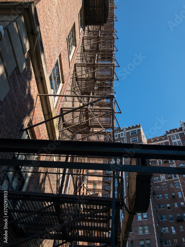 © Bonnie, Fototapeta premium fire escape on side of building from below