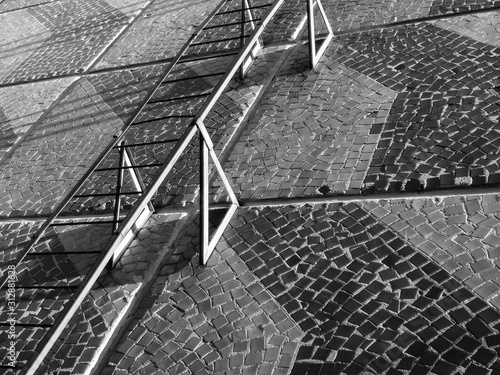 © Lucky Photographer, Fototapeta premium Fire escape. Soviet apartment building. Ust-Kamenogorsk (Kazakhstan). Architectural background. Black and White