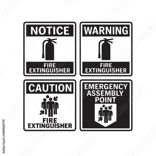 © Afjal, Naklejka premium fire extinguisher icon set, silhouette vector illustration