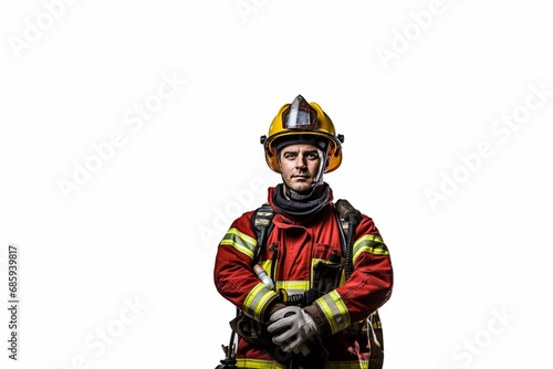Fototapeta premium fire fighter self portrait with equipment on white background