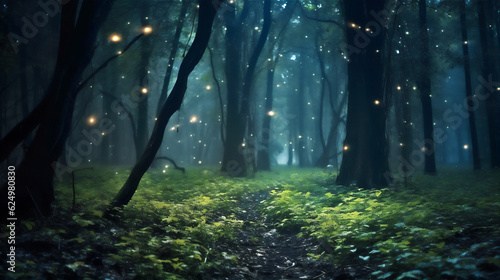 © Maizal, Obraz premium fire fly in deep forest in autumn at the night, create using generative AI tools