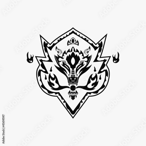 © Ris_aris, Fototapeta premium fire fox head illustration. creative, animal, detiled and line art style. suitable for logo, icon, symbol and sign. such as e sports, sports logo and t shirt design