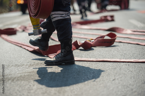 Fototapeta premium fire hose connection ,fire fighting equipment for fire fighter.