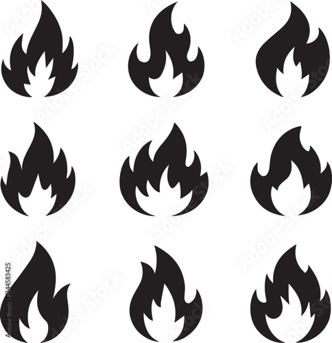 © Team Toucan, Fototapeta premium Fire icon vector set. Fire flame symbol. Flame icon collection. fireball and flame vector illustration icon set.