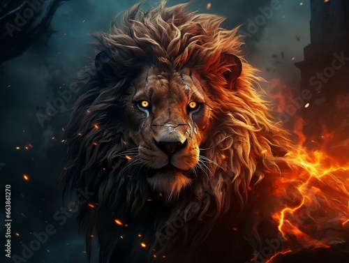 Fototapeta premium Fire lion art on abstract background generative ai