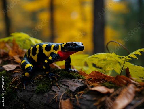 Fototapeta premium Fire Salamander, Vibrant Colors of European Forests, Generative AI
