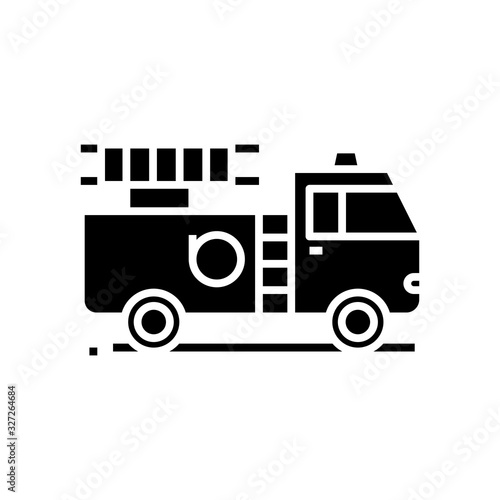 Fototapeta premium Fire truck black icon, concept illustration, vector flat symbol, glyph sign.