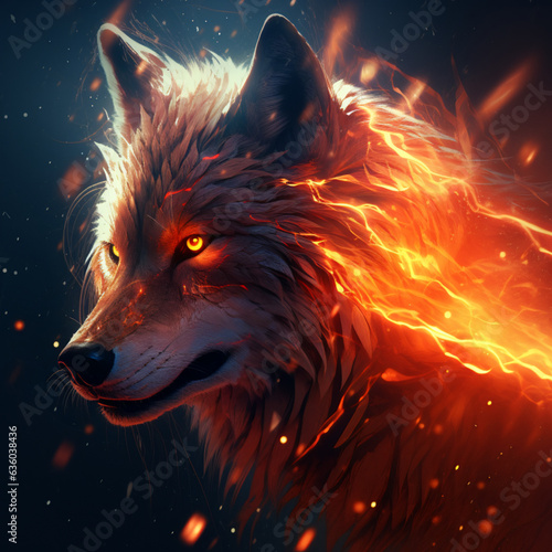 Naklejka premium Fire Wolf Portrait