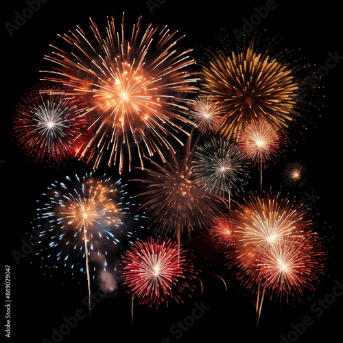 © Apple Stock 963, Naklejka premium fire works in the sky with black background