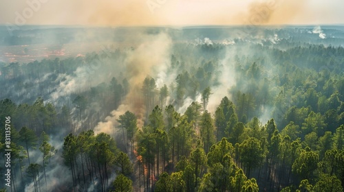 Fototapeta premium Firebreak cutting through a forest, creating a barrier to halt the spread of...