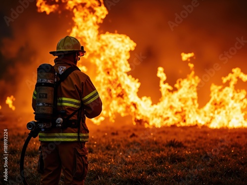 Naklejka premium Firefighter and Wildfire