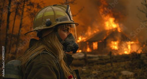 Naklejka premium Firefighter Battling Wildfire Structure Fire Emergency Response