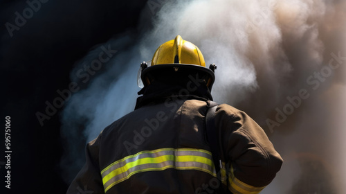 Naklejka premium firefighter extinguishing a fire, generative ai