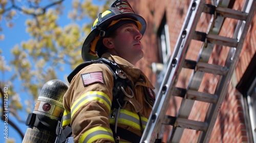 © shaiq, Obraz premium Firefighter in Training: During training exercises, firefighters practice rescue techniques, climb ladders, and simulate firefighting scenarios to maintain readiness for emergencies