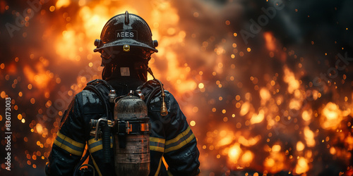 © This is for you..., Fototapeta premium firefighter is looking at conflagration fire, generative ai