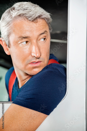 Obraz premium Firefighter Reversing Firetruck