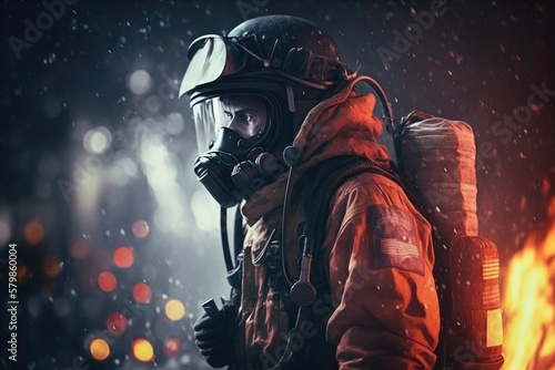 Fototapeta premium Firefighter searching for possible survives. Generative AI