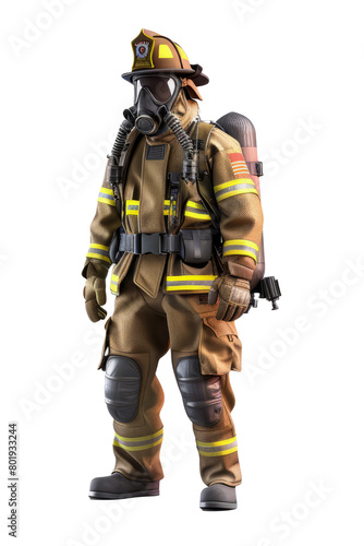 Fototapeta premium firefighter, standing in full gear on a pure white background.