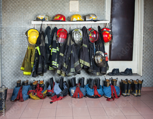 Fototapeta premium Firefighter Suits Arranged At Fire Station