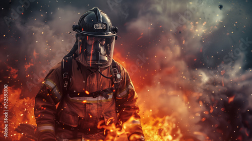 Fototapeta premium Firefighter surrounded by fire