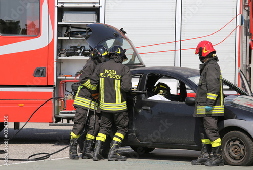 Fototapeta premium firefighters and relieve the injured in car