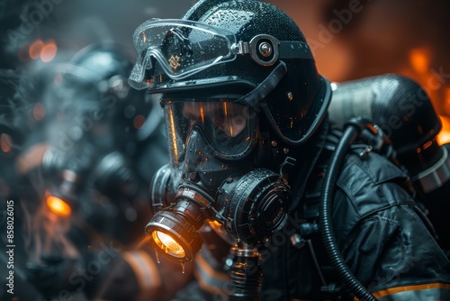 © Елена Нечипоренко, Fototapeta premium Firefighters extinguish a raging fire