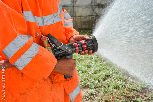 © Taechit, Fototapeta premium Firefighters Extinguishing House Fire