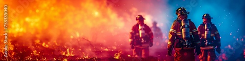 © NovaVision, Fototapeta premium Firefighters in Action Against Blazing Inferno. Generative ai