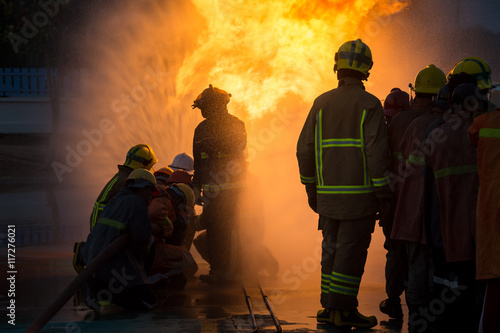 Naklejka premium Firefighters training