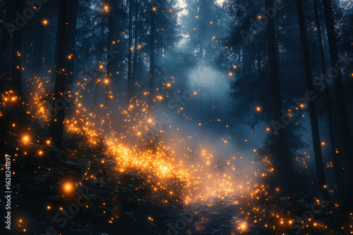 © Natalia, Naklejka premium Fireflies glowing in the forest at night.