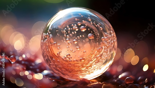 © GoldenHiveStudio , Fototapeta premium Firefly - Beautiful spa elements featuring water bowl with floating pink bubbles