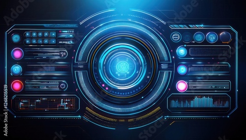 © Hazim, Fototapeta premium Firefly Dark Mode Futuristic UI Elements with Subtle Neon Highlights