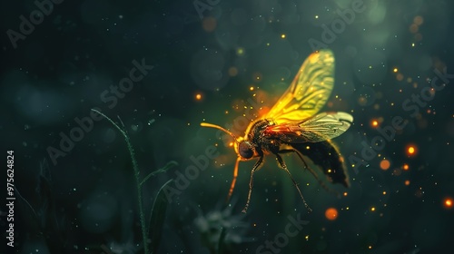 © pixelwallpaper, Obraz premium Firefly glowing in the dark