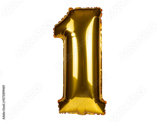 Fototapeta premium Firefly_Gold helium balloon shaped as number 1 isolated on transparent background; PN