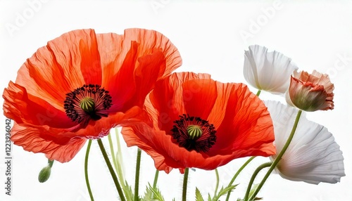 © MdRakibul, Fototapeta premium Firefly Poppy flowers isolated on white background