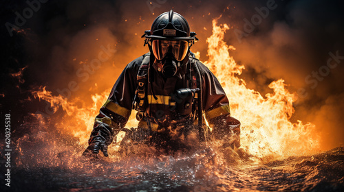 © Aliverz, Fototapeta premium fireman in action, created with Generative AI