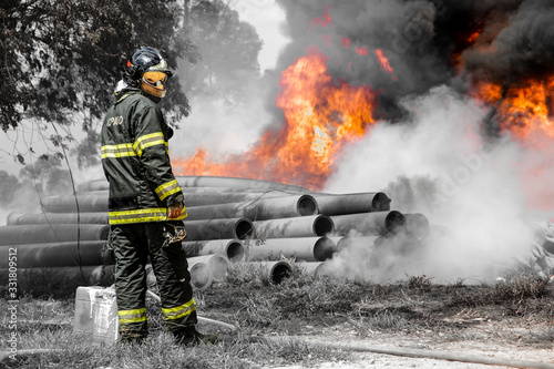 © Alexandre, Obraz premium Fireman preparing to stop the flames
