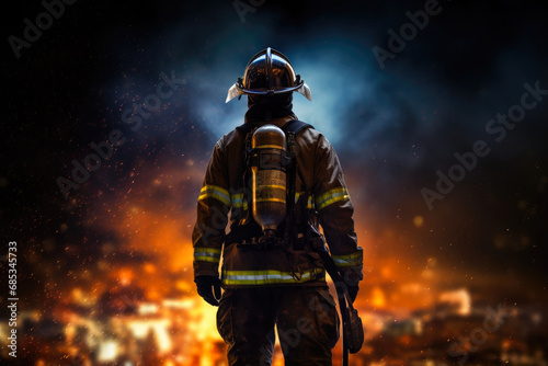 © Andrii , Fototapeta premium Fireman's Standoff Against Night Blaze