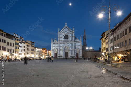 © Guido, Fototapeta premium Firenze. Basilica di Santa Croce nella piazza omonima al crepuscolo.