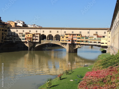© filippoph, Fototapeta premium Firenze - Ponte Vecchio riflesso nell'Arno
