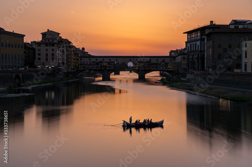 © Manuel, Naklejka premium Firenze, tramonto sull'Arno e Ponte Vecchio