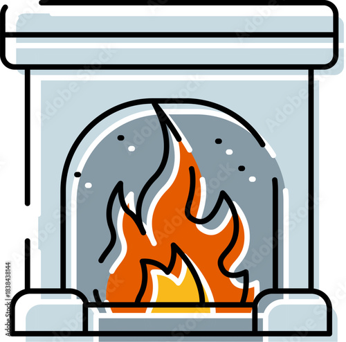 © vectorwin, Obraz premium Fireplace emitting warm flame icon illustration