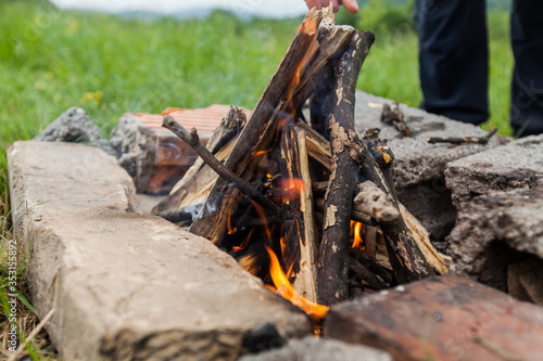 © mitarart, Obraz premium Fireplace for improvised barbecue