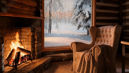 Obraz premium fireplace in cabin